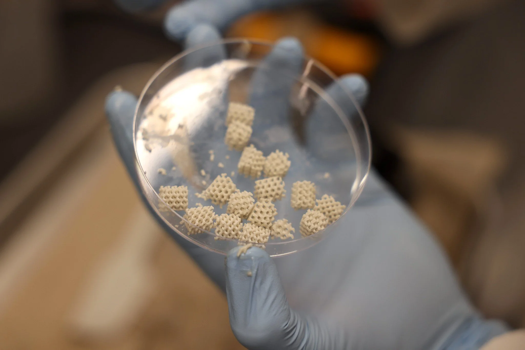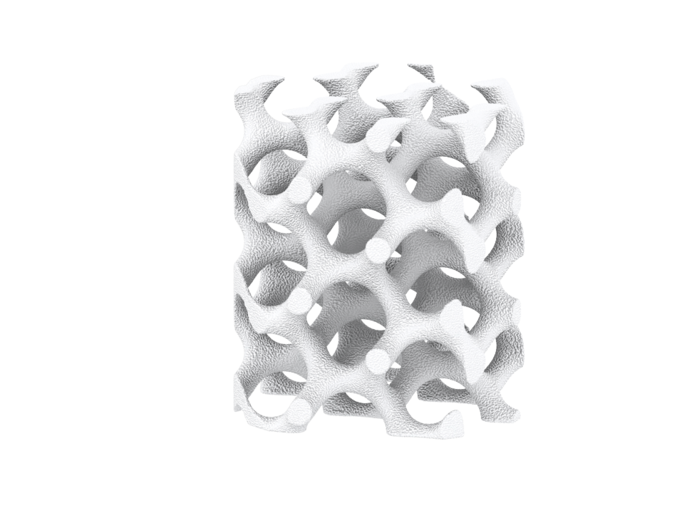 Bio-ceramic gyroids 3D printed with polymer cryogel composite.